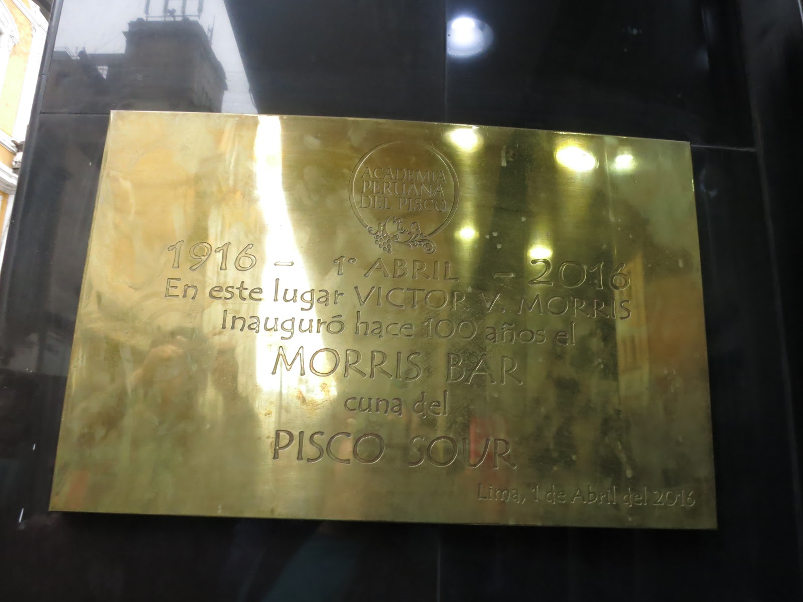 | Placa del Bar Morris, donde se preparó el primer Pisco sour |